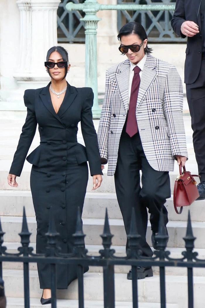 Ngôi sao thêm phần lộng lẫy nhờ đôi khuyên vành tai Briony Raymond bằng vàng 18K có giá 8.100 USD (hơn 210 triệu đồng) cùng loạt trang sức của Repossi. Kris Jenner, mẹ của Kim Kardashian, cùng con gái đến tòa án. Bà cũng gây ấn tượng không kém với bộ vest kẻ caro và quần đen, thắt cà vạt đen.